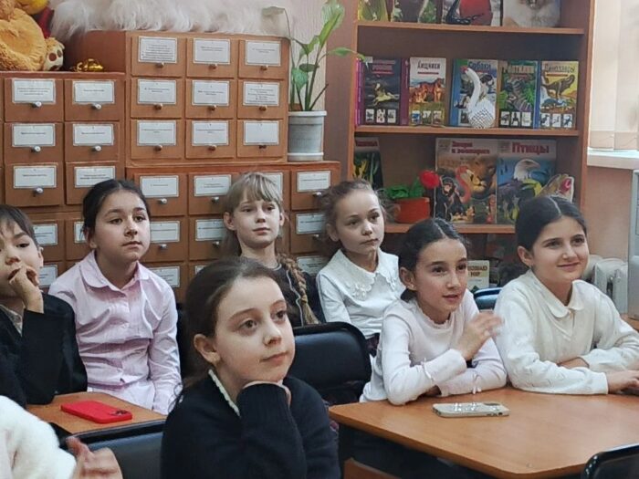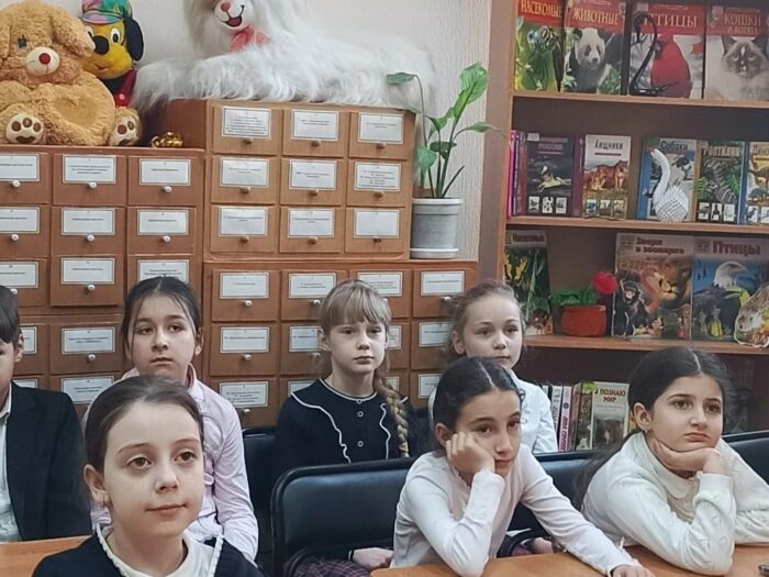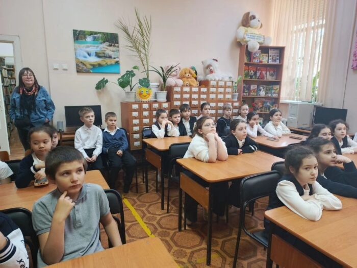 С большим интересом юные читатели ознакомились с выставкой, посвященной Году народного единства. Школьники увидели красочную палитру сказок и национальных костюмов народов России.